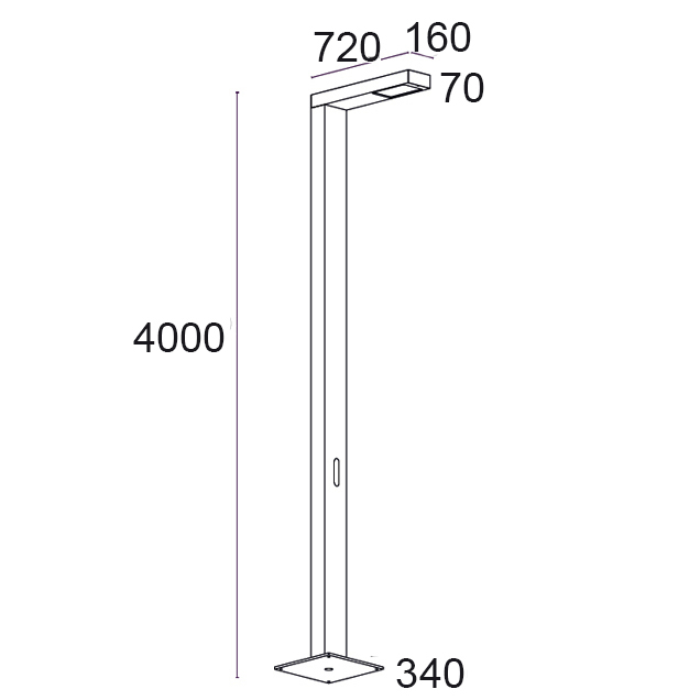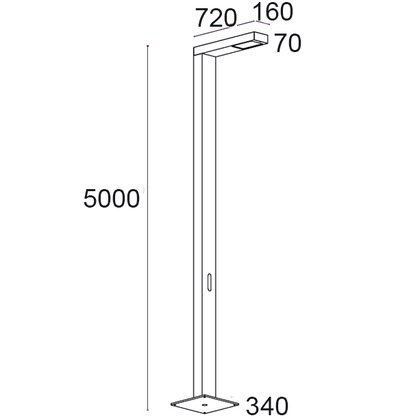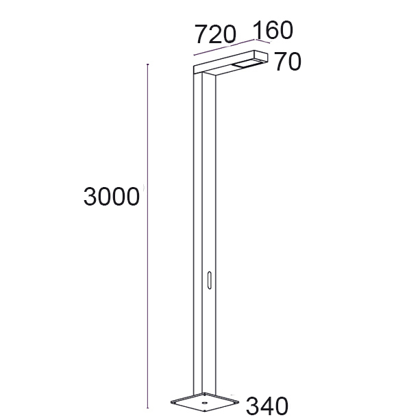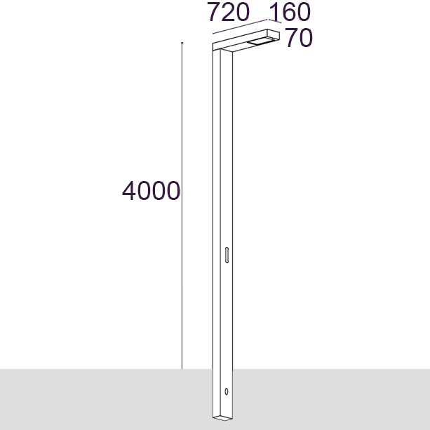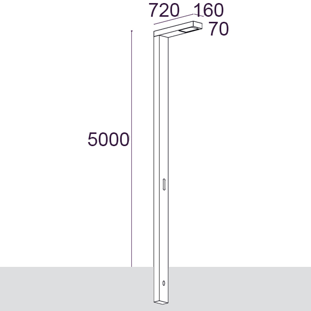 Leuchte für Stadtmöbel mit asymmetrischer Lichtverteilung, geeignet für die Beleuchtung von Straßen, Parkplätzen und öffentlichen Räumen. Erhältlich in Einzel- oder Doppelversion, auch auf verschiedenen Ebenen. Es verwendet spezielle Optiken, um unterschiedliche Beleuchtungsanforderungen zu erfüllen.