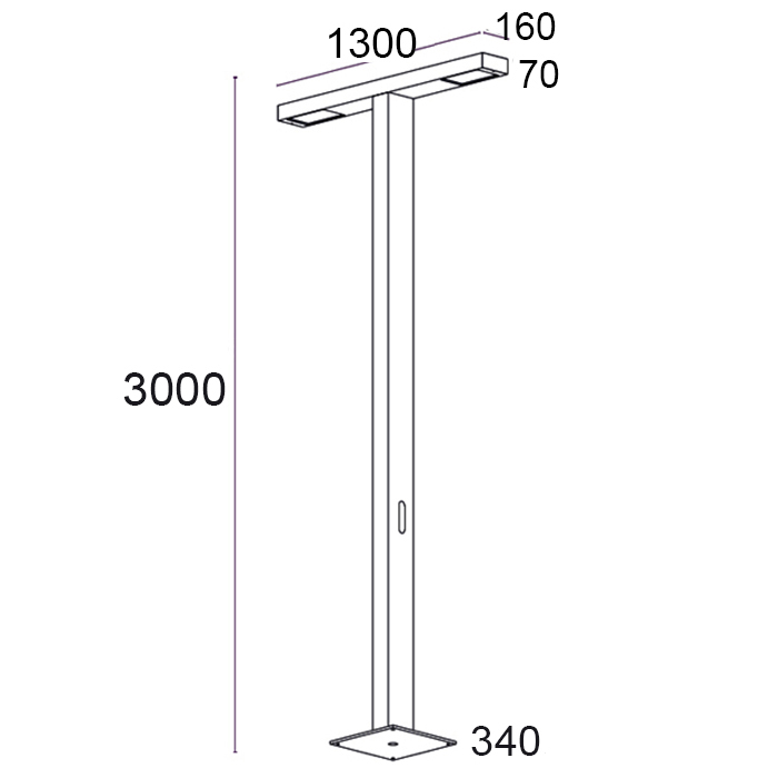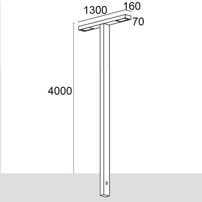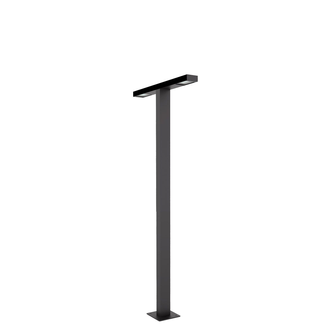 Leuchte für Stadtmöbel mit asymmetrischer Lichtverteilung, geeignet für die Beleuchtung von Straßen, Parkplätzen und öffentlichen Räumen. Erhältlich in Einzel- oder Doppelversion, auch auf verschiedenen Ebenen. Es verwendet spezielle Optiken, um unterschiedliche Beleuchtungsanforderungen zu erfüllen.