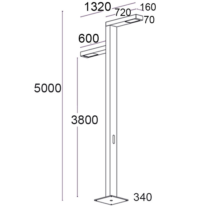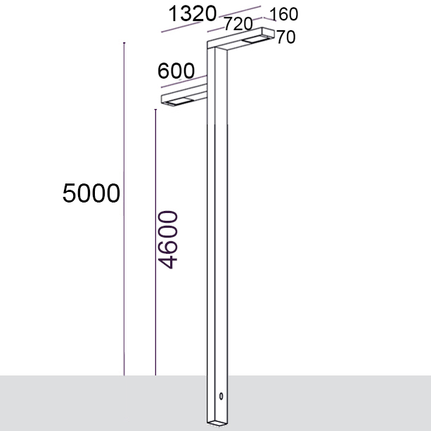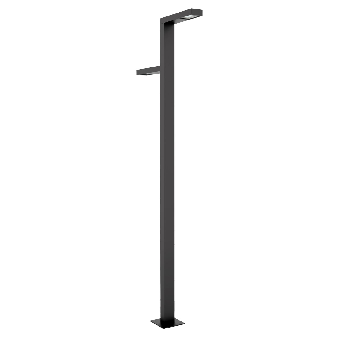 Luminaire pour l'aménagement urbain avec répartition de la lumière à bande asymétrique, adapté à l'éclairage des rues, des parkings et des espaces publics. Disponible en version simple ou double, même sur différents niveaux. Il utilise des optiques dédiées pour répondre aux besoins lumineux diversifiés.