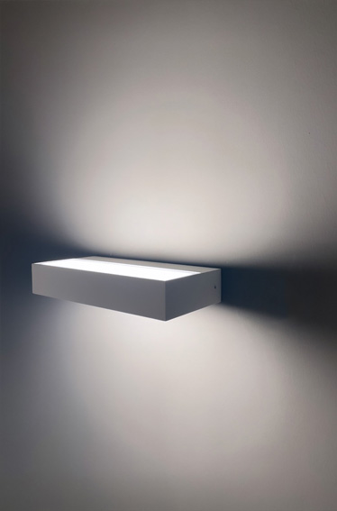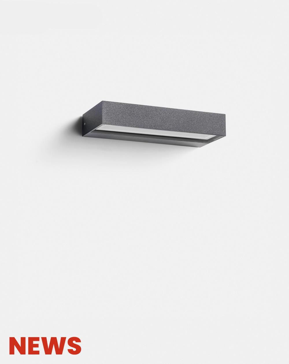 Deva è un'applique rettangolare dal profilo sottile, pensata per l'esterno ma perfettamente integrabile anche in ambienti interni dal gusto contemporaneo. Disponibile con emissione singola o doppia, offre una luce diffusa e uniforme, ideale per valorizzare superfici architettoniche con discrezione ed eleganza.