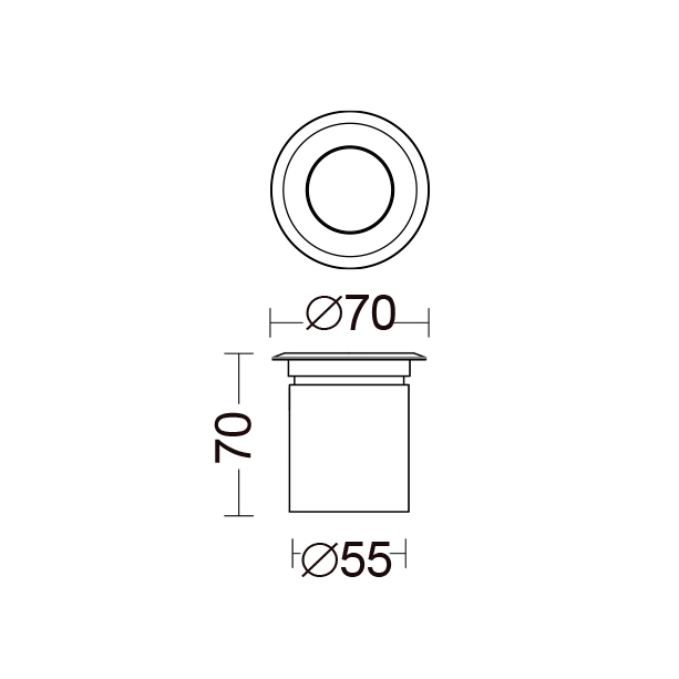 Incasso con ghiera in acciaio verniciato Ø70 - 24Vdc