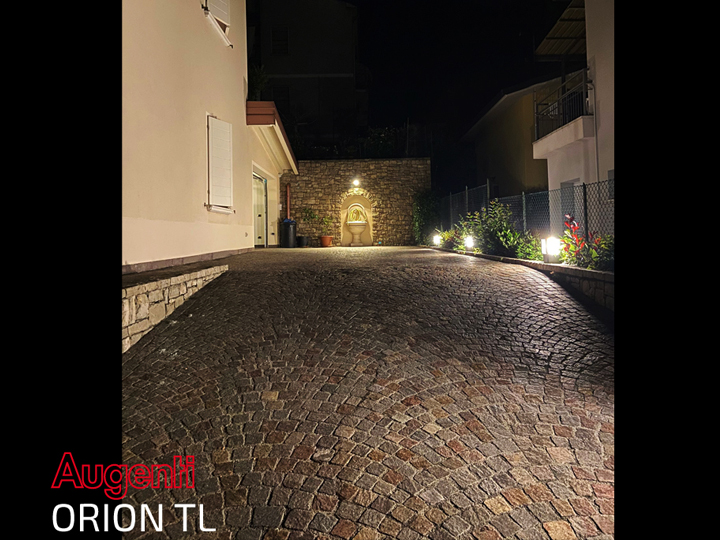 L’installazione di applique a parete Ginevra ha permesso di valorizzare e delineare l’elegante struttura della villa, risaltandone particolari architettonici e volumi. A completare l’illuminazione del giardino e dell’area circostante, Lunos e Orion TL hanno consentito di ottenere omogeneità di luce, atmosfera e funzionalità.